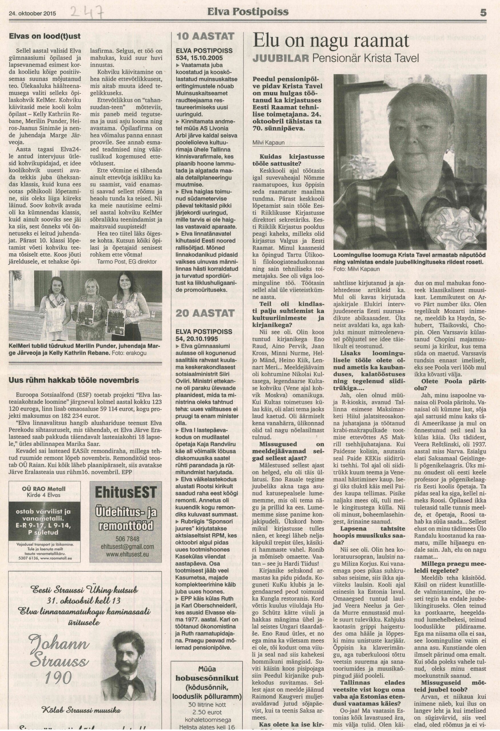 Elva gümnaasiumi õpilased ja lastevanemad valisid esimest korda koolielu kõige mõjukama teo. Selleks osutus õpilaskohvik KelMer.