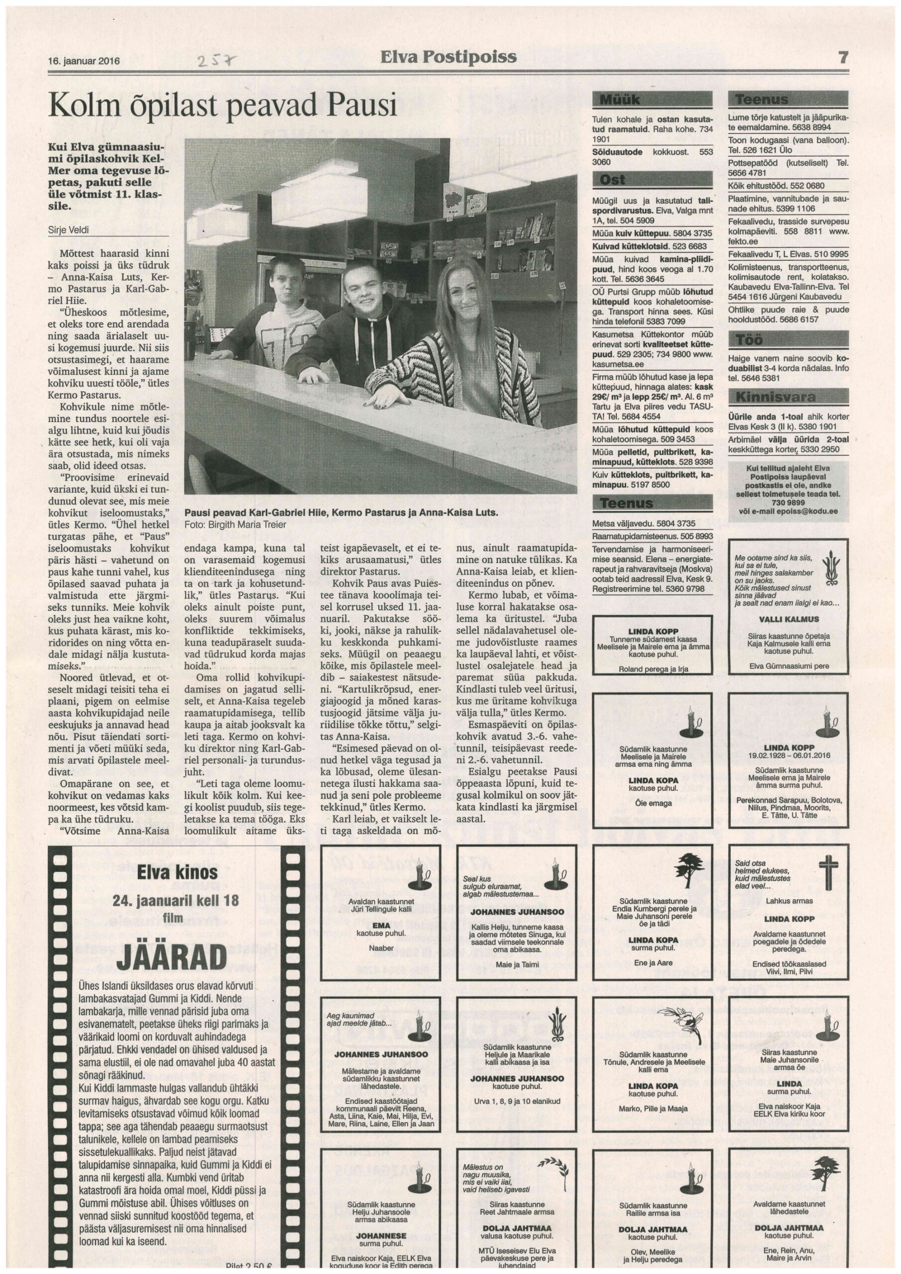 Taasavati Elva gümnaasiumi õpilaskohvik Paus.