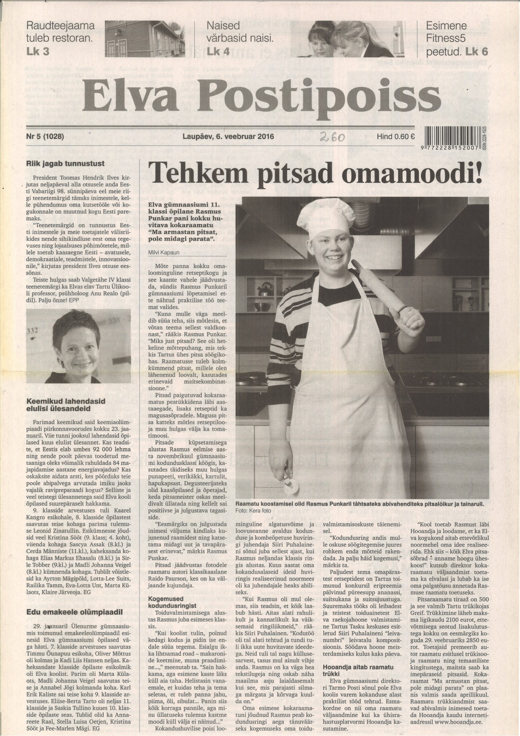 * Elva gümnaasiumi õpilane Rasmus Punkar pani kokku pitsaraamatu.