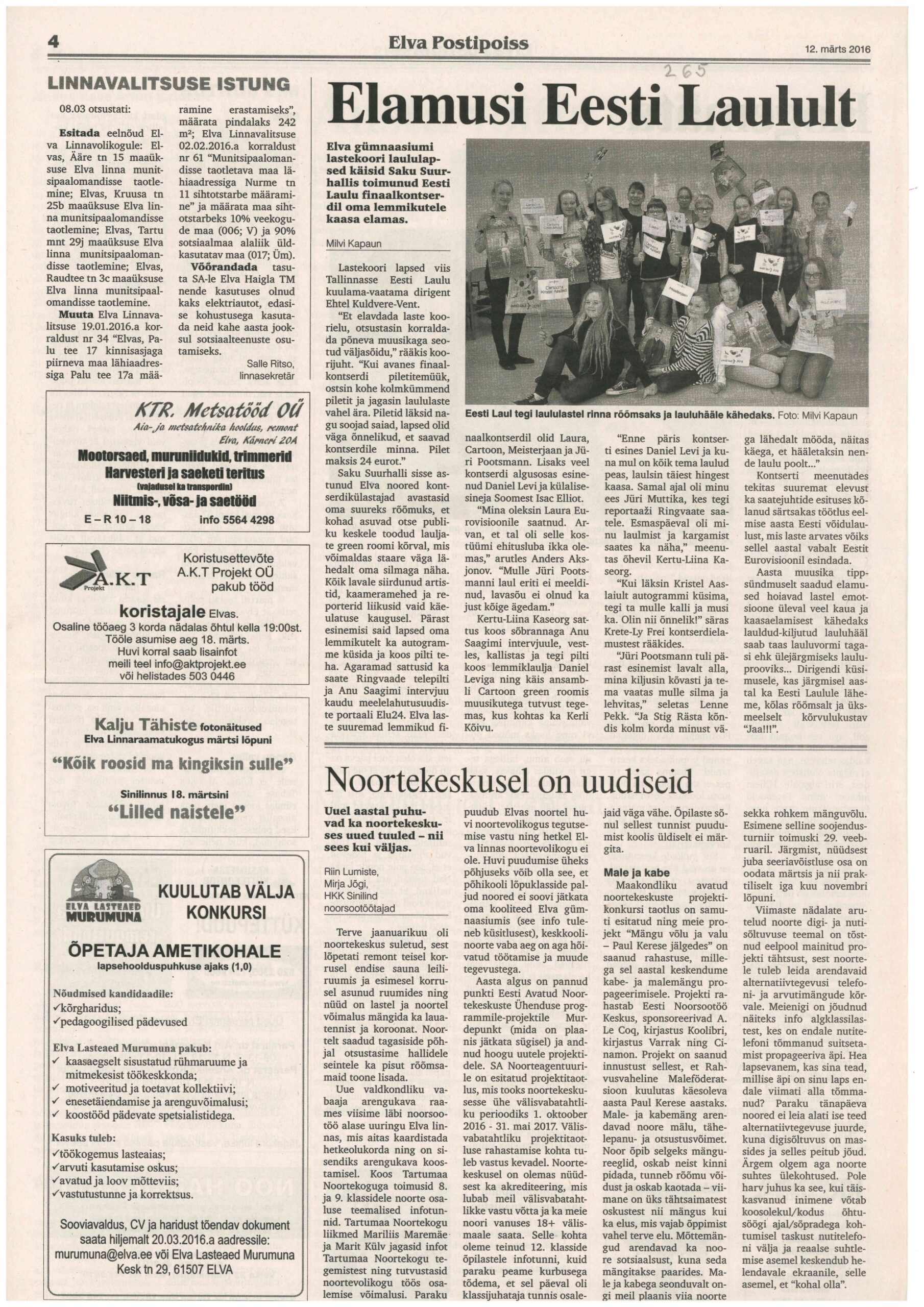 Meie kooli lastekoori liikmed käisid Saku Suurhallis kaasa elamas oma lemmikutele Eesti Laulu finaalis.